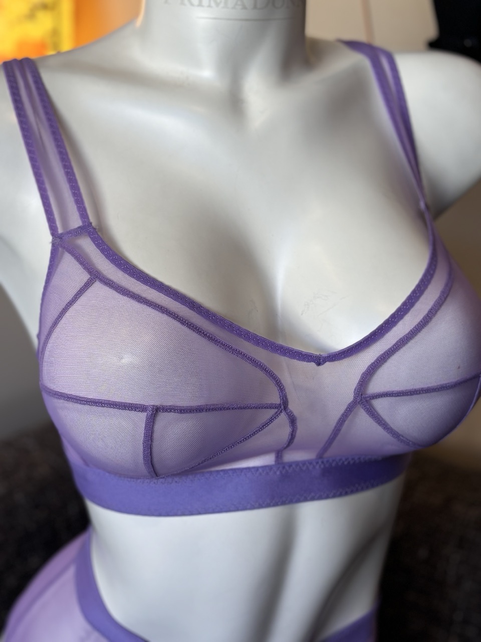 Retro-inspired bra top crafted from bi-stretch Italian mesh, featuring adjustable hook and eye closures at the back.